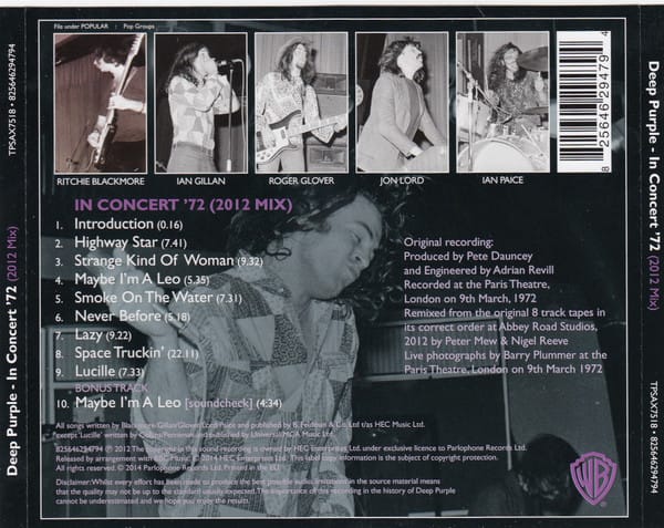 Deep Purple - In Concert ’72 (CD, Warner)