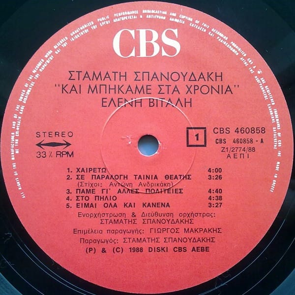 Σταμάτης Σπανουδάκης , Ελένη Βιτάλη ‎- Και Μπήκαμε Στα Χρόνια (LP, CBS) [SL/LP: VG+/NM]